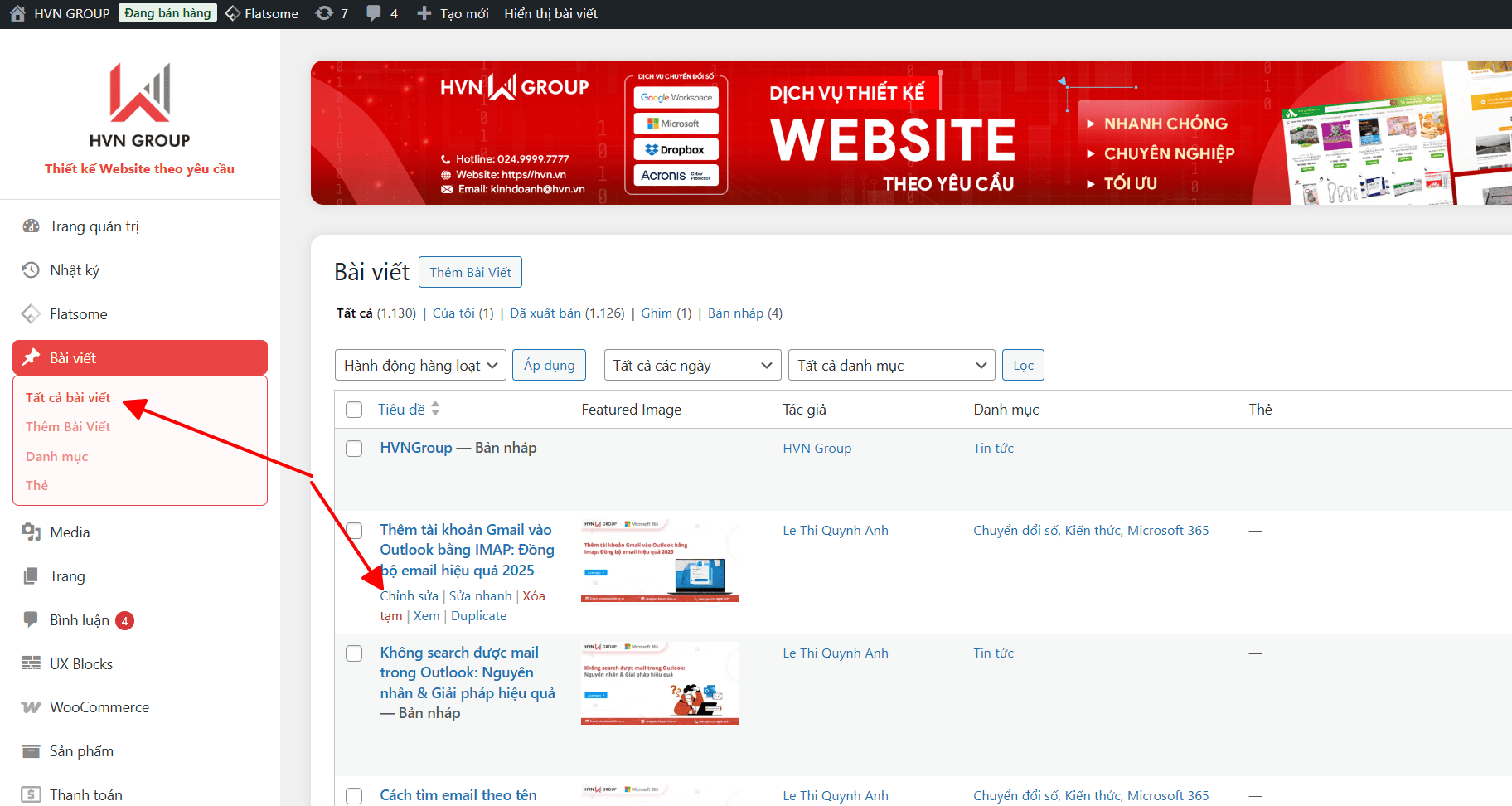 - Trên giao diện quản trị, vào mục “Bài viết” > “Tất cả bài viết” (Posts > All Posts).