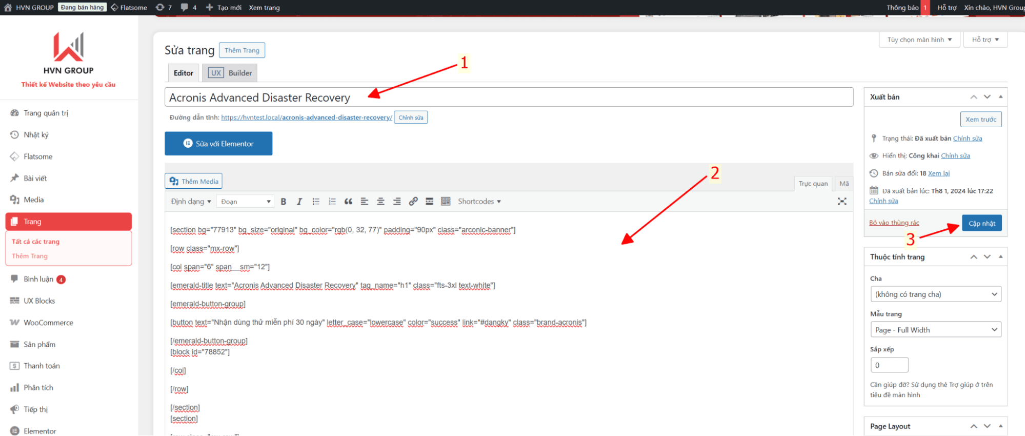 - Nhập nội dung trang