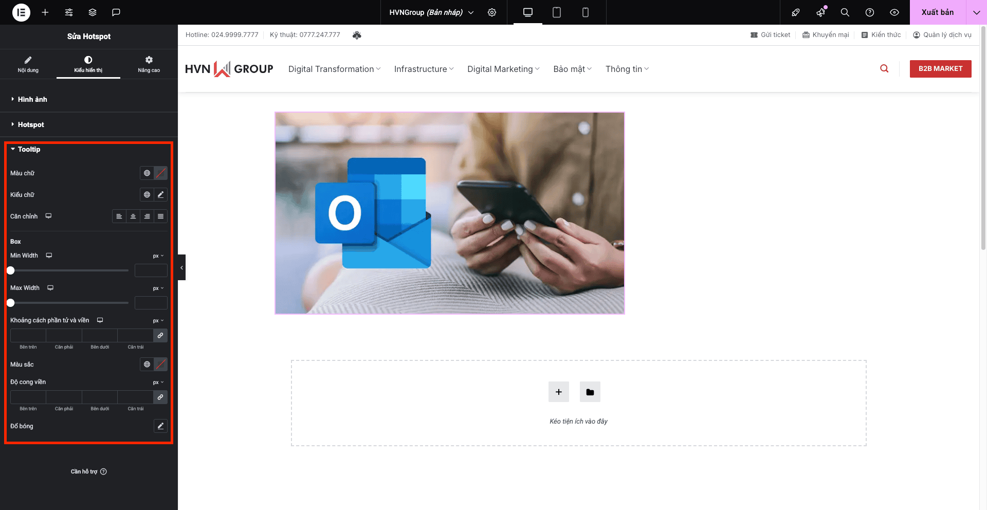 - Bạn có thể thêm màu nền, hình nền hoặc gradient cho toàn bộ vùng chứa tiện ích Hotspot.