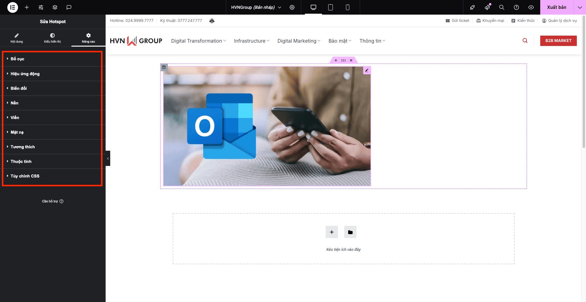 - Ẩn trên máy tính để bàn (Hide On Desktop), Ẩn trên máy tính bảng (Hide On Tablet), Ẩn trên thiết bị di động (Hide On Mobile): Cho phép bạn ẩn tiện ích Hotspot trên các loại thiết bị khác nhau nếu cần.