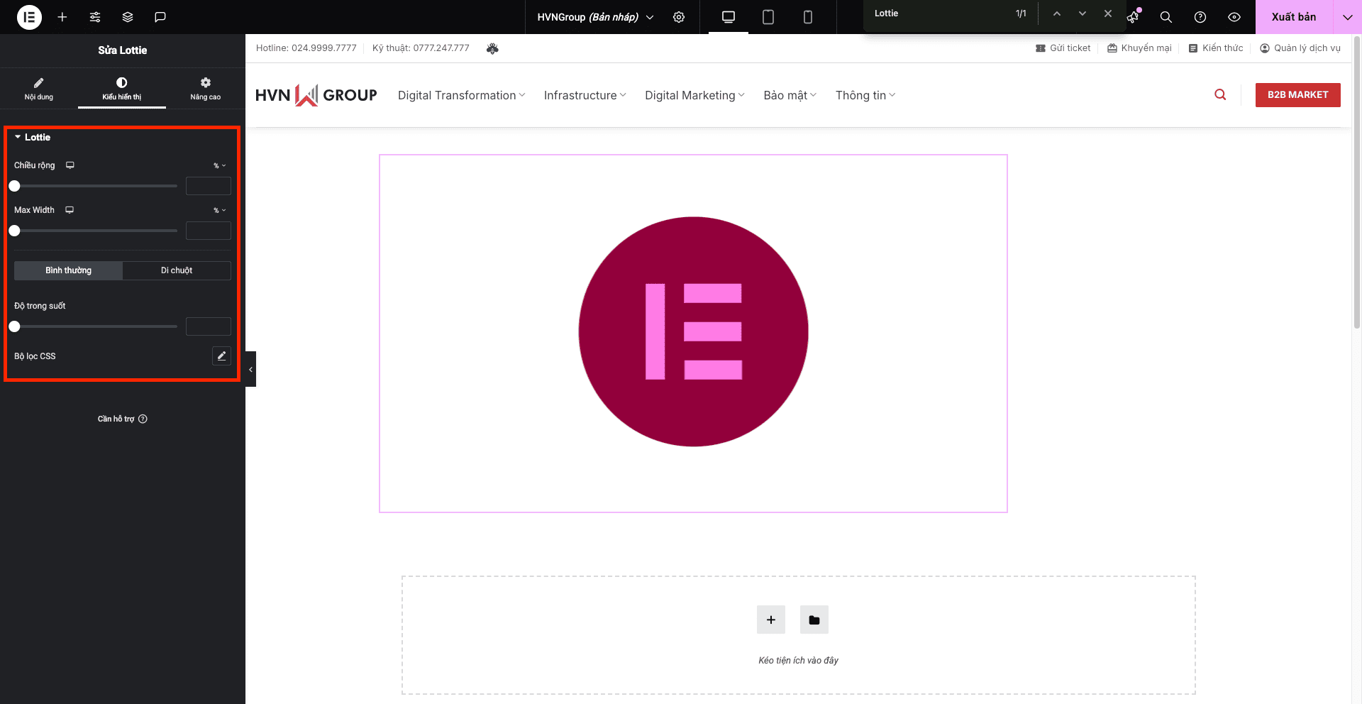 - Ẩn trên máy tính để bàn (Hide On Desktop), Ẩn trên máy tính bảng (Hide On Tablet), Ẩn trên thiết bị di động (Hide On Mobile): Cho phép bạn ẩn tiện ích Lottie trên các loại thiết bị khác nhau nếu cần.