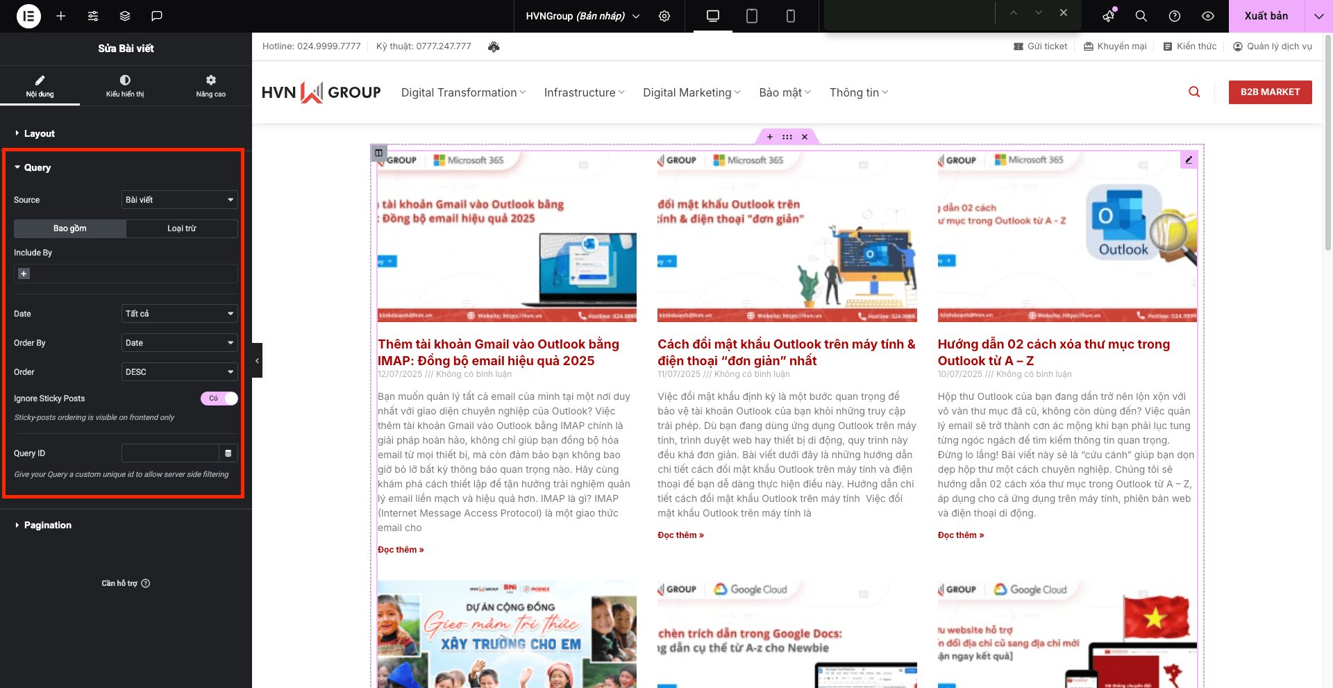 - Source (Nguồn): Chọn nguồn bài viết (ví dụ: Posts, Pages, Custom Post Types).