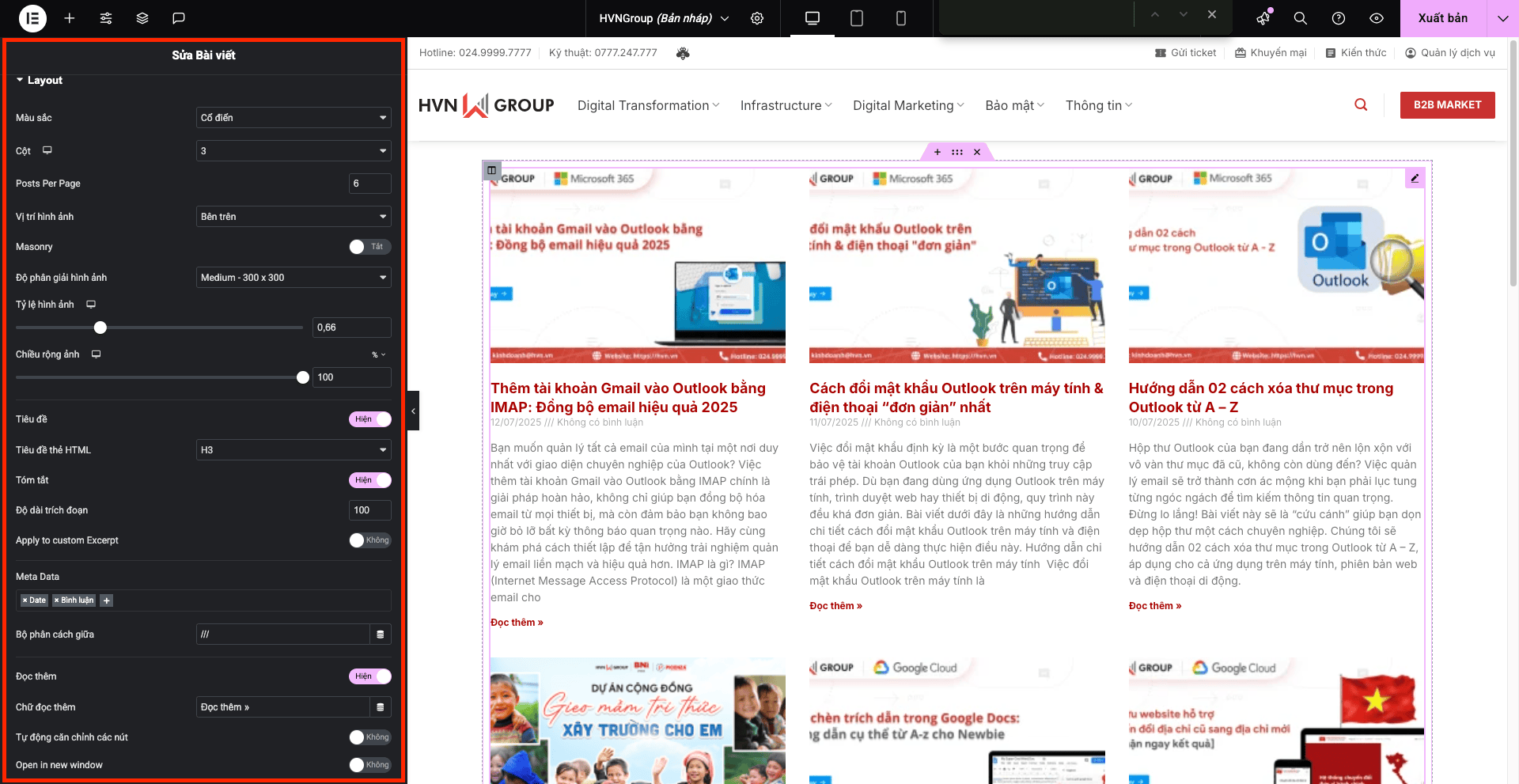 Đây là nơi bạn tùy chỉnh giao diện của lưới/danh sách bài viết.