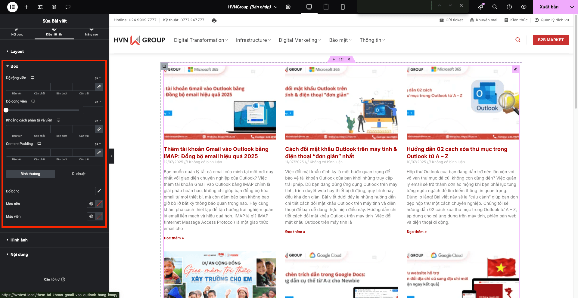 - Margin (Lề): Khoảng cách bên ngoài tiện ích Bài viết với các phần tử khác xung quanh.