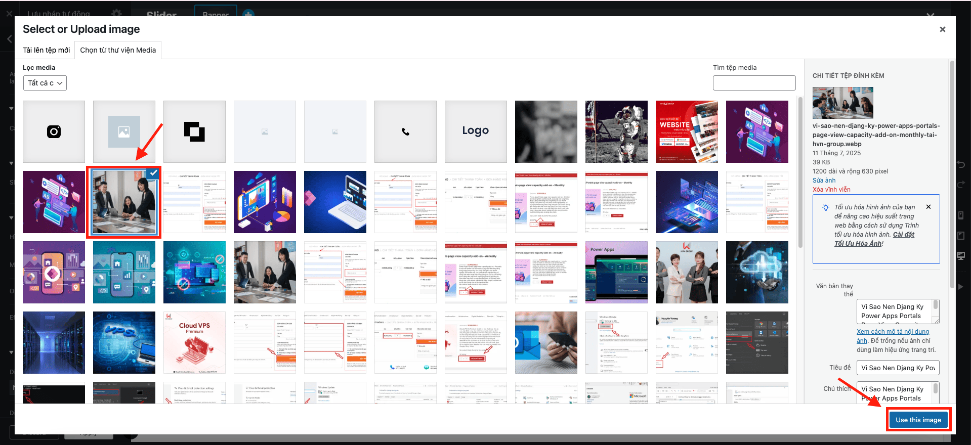 - Bước 5: Sau khi chọn xong ảnh, nhấn nút “Use this image” (Sử dụng ảnh này) màu xanh.
