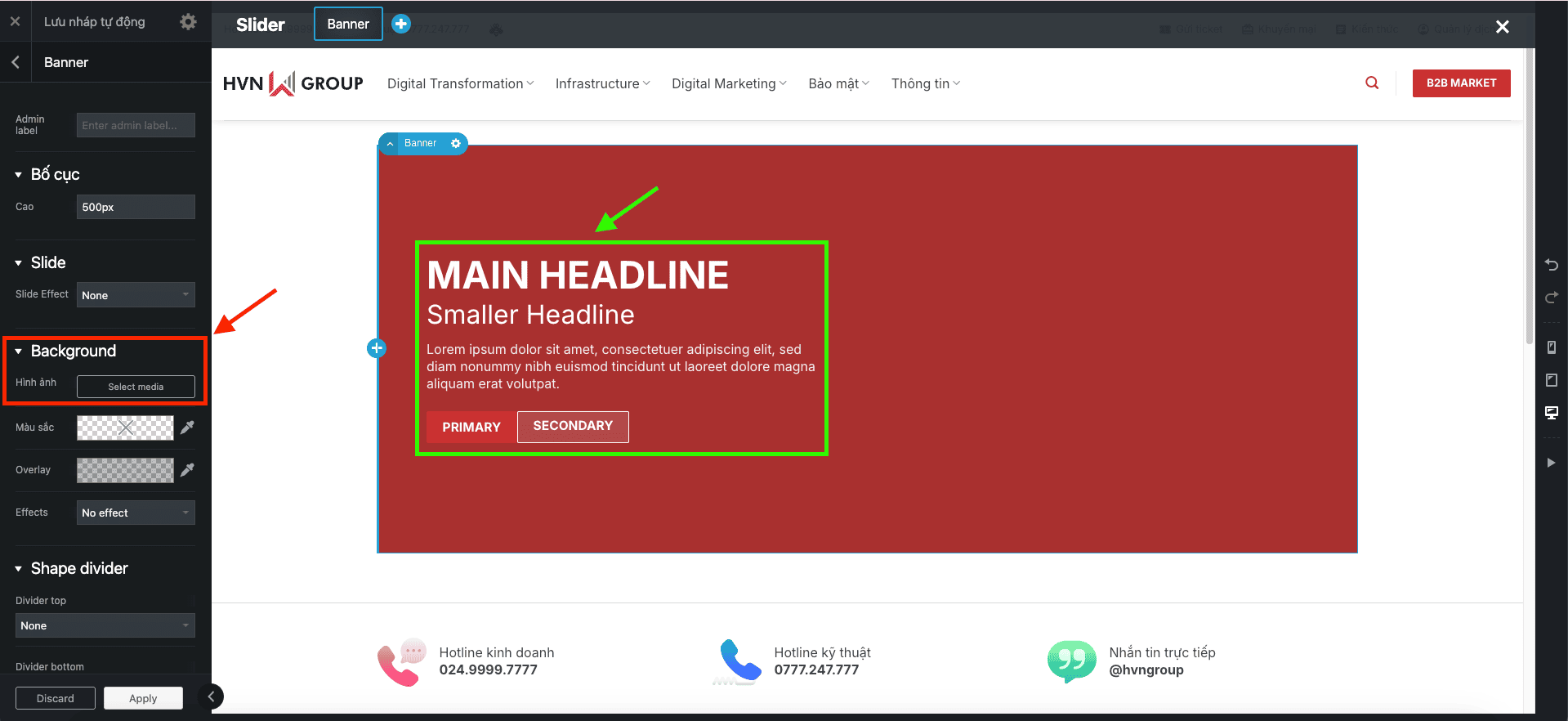 1. Cách thay đổi hình nền của một Banner: