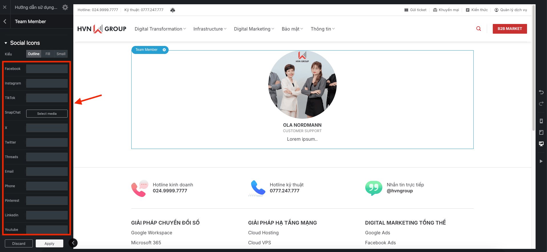 - Lưu ý quan trọng: Ô nào Anh/Chị bỏ trống, biểu tượng mạng xã hội đó sẽ tự động không hiện ra. Rất tiện lợi!