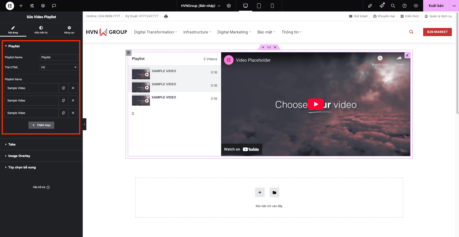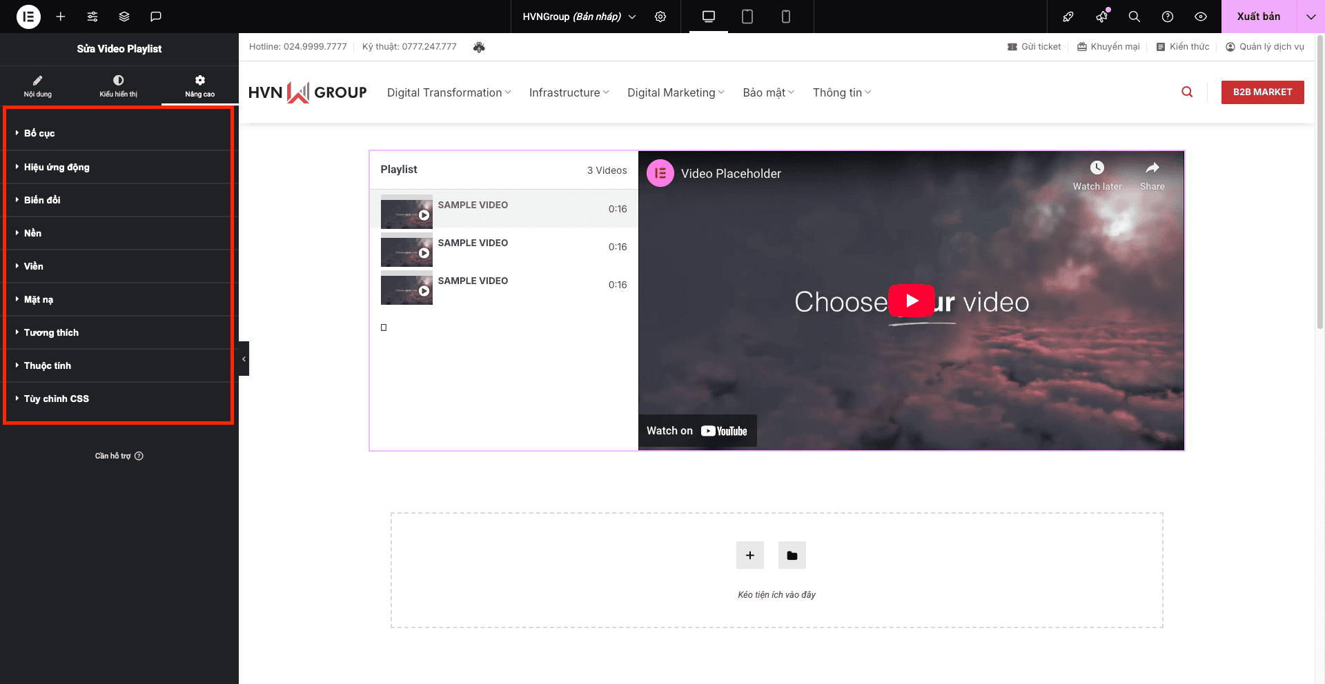 - Ẩn trên máy tính để bàn (Hide On Desktop), Ẩn trên máy tính bảng (Hide On Tablet), Ẩn trên thiết bị di động (Hide On Mobile): Cho phép bạn ẩn tiện ích Video Playlist trên các loại thiết bị khác nhau nếu cần.