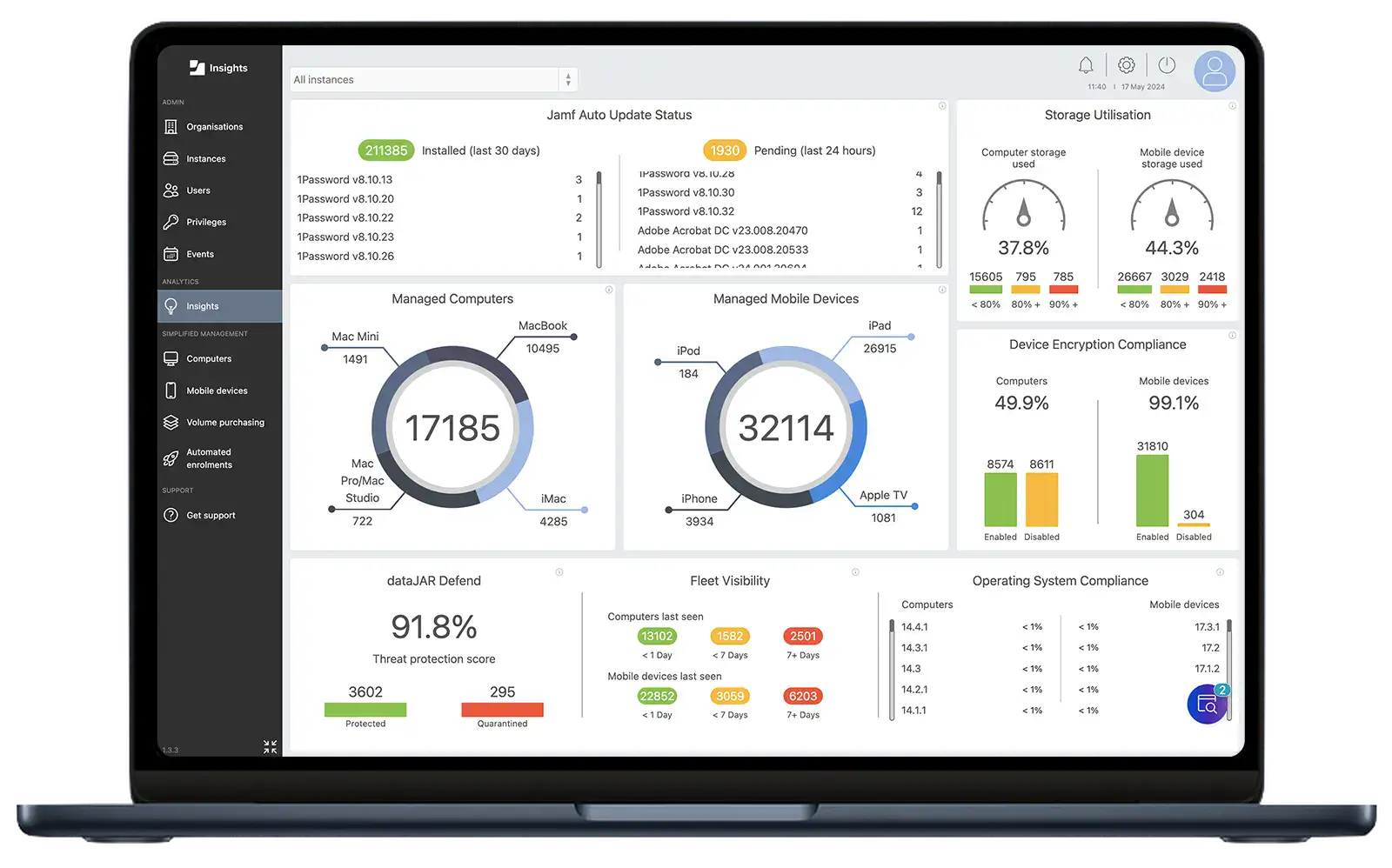 Jamf là nền tảng quản lý thiết bị di động (MDM – Mobile Device Management) và bảo mật chuyên biệt, được xây dựng riêng cho Apple. Với hơn 76.600 khách hàng trên toàn cầu và sự tin tưởng của các tập đoàn lớn, Jamf cho phép các tổ chức: