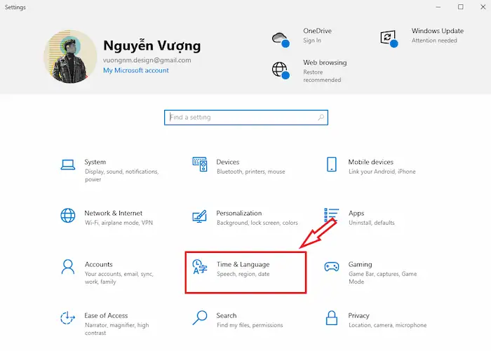 – Bước 1: Nhấn tổ hợp phím Windows + I để mở cửa sổ Settings.