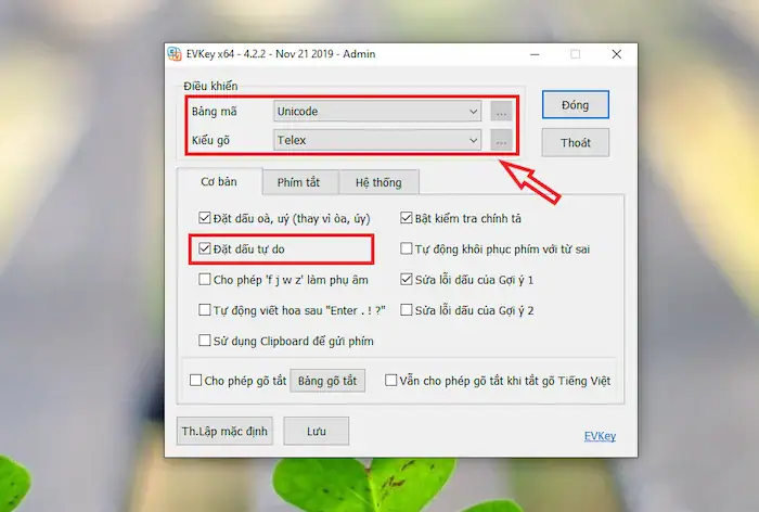 – Bước 4: Kiểm tra và tích chọn ô Đặt dấu tự do để tránh việc phần mềm tự động sửa dấu sai ý muốn.