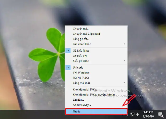 – Bước 3: Lúc này, bạn hãy tạm thời tắt Unikey/EVKey trên máy tính để tránh hai bộ gõ hoạt động cùng lúc gây loạn chữ.