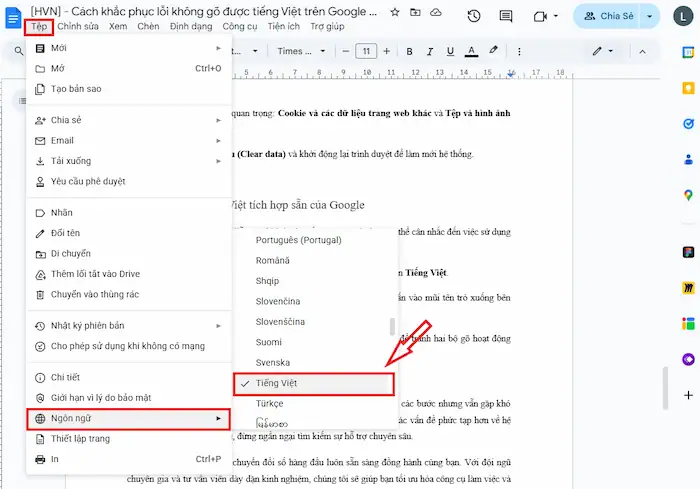 05+ Cách khắc phục lỗi không gõ được tiếng Việt trên Google Docs nhanh chóng