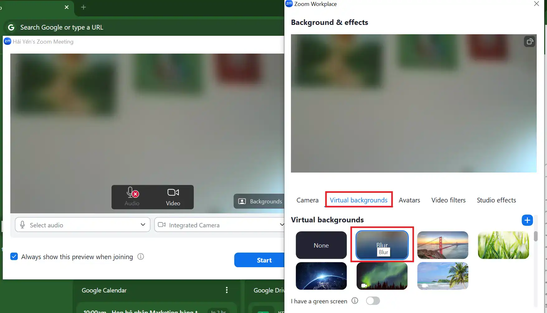Làm mờ background Zoom khi bắt đầu tham gia cuộc họp