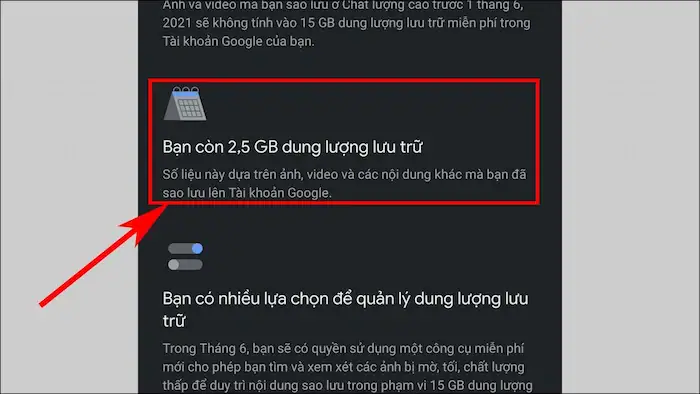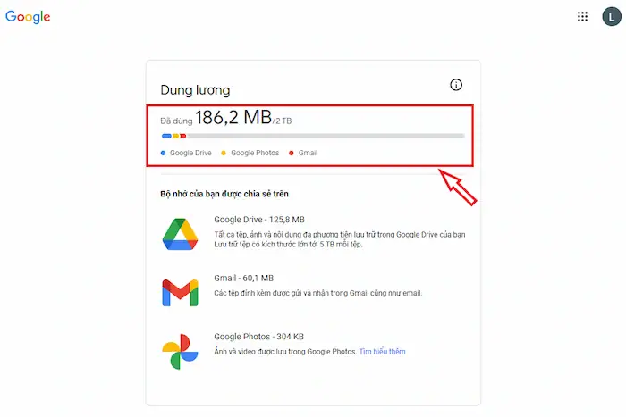 Dung lượng lưu trữ của tài khoản Google đã đầy