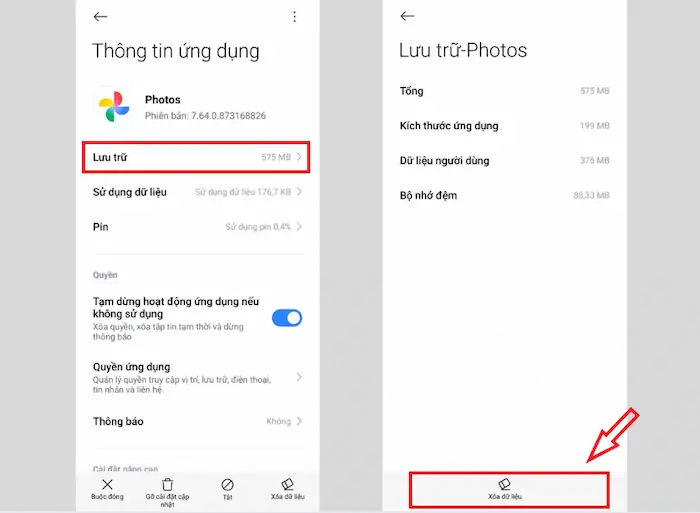 1. Xóa bộ nhớ đệm (Cache) và Dữ liệu ứng dụng có làm mất ảnh không?