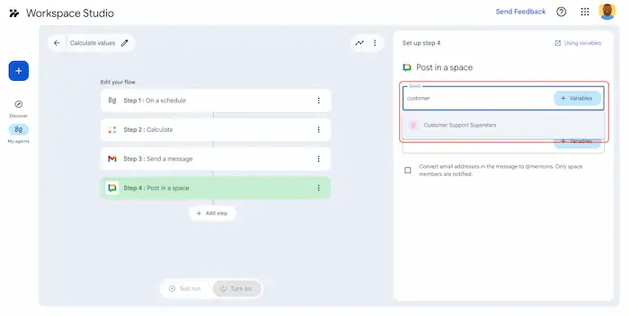 Đôi khi, lỗi thường gặp khi sử dụng Google Workspace Flows xảy ra không phải do người dùng mà do sự cố tạm thời từ dịch vụ. Với lỗi này, hệ thống sẽ hiển thị thông báo “Couldn’t turn on agent. Please try again.” (Không thể bật tác nhân. Vui lòng thử lại.).