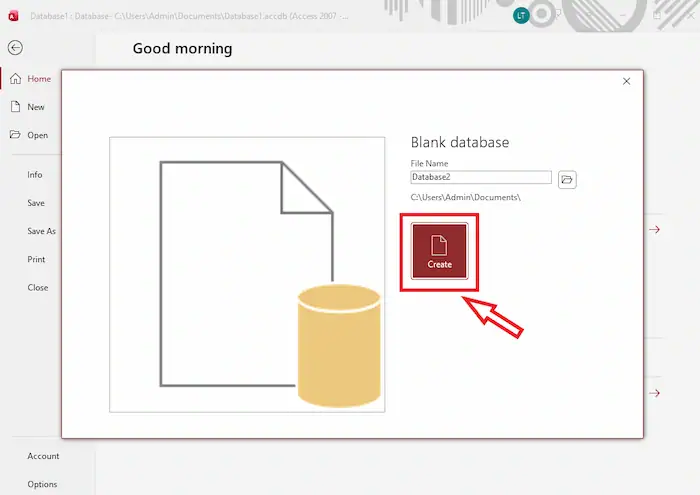 – Bước 2: Đặt tên cho cơ sở dữ liệu >> nhấn Create.