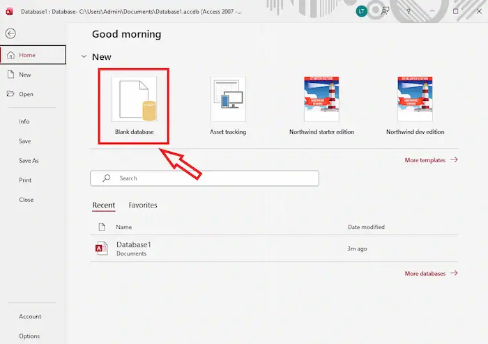 – Bước 1: Mở Microsoft Access >> chọn Blank Database.