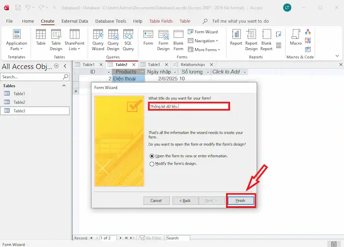 – Bước 5: Đặt tên cho biểu mẫu >> nhấn Finish để kết thúc.