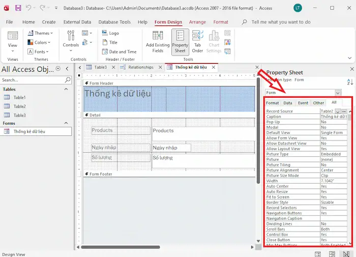 - Record Source: Nguồn dữ liệu