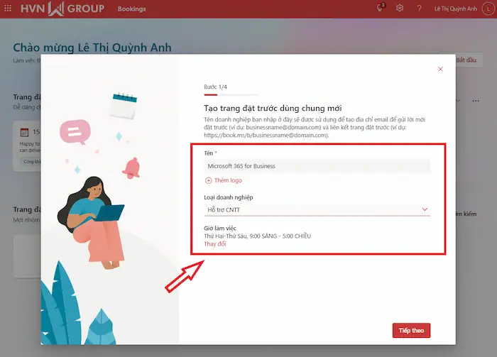Để bắt đầu sử dụng Microsoft Bookings, trước tiên bạn cần thực hiện các bước thiết lập cơ bản để tạo trang đặt lịch tùy chỉnh cho doanh nghiệp hoặc cá nhân. Cụ thể:
