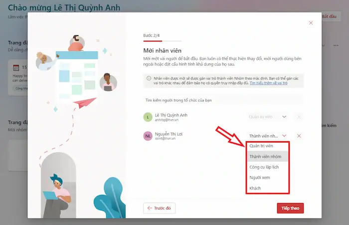 Chỉ định Vai Trò Cho Nhân Viên Trên Trang Microsoft Bookings