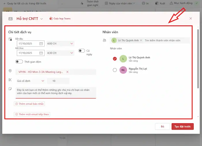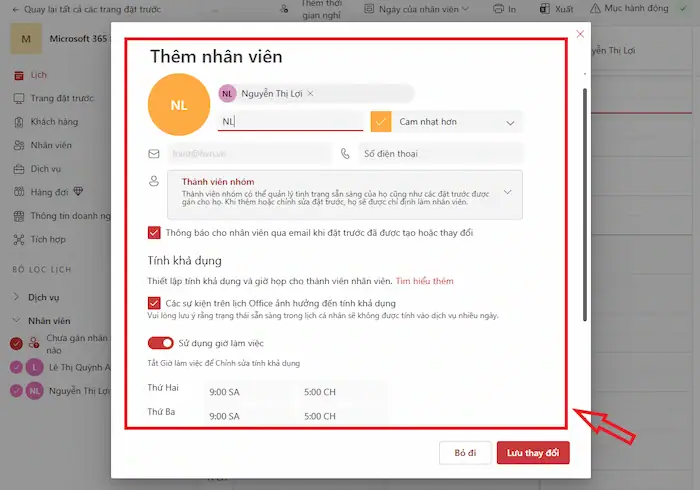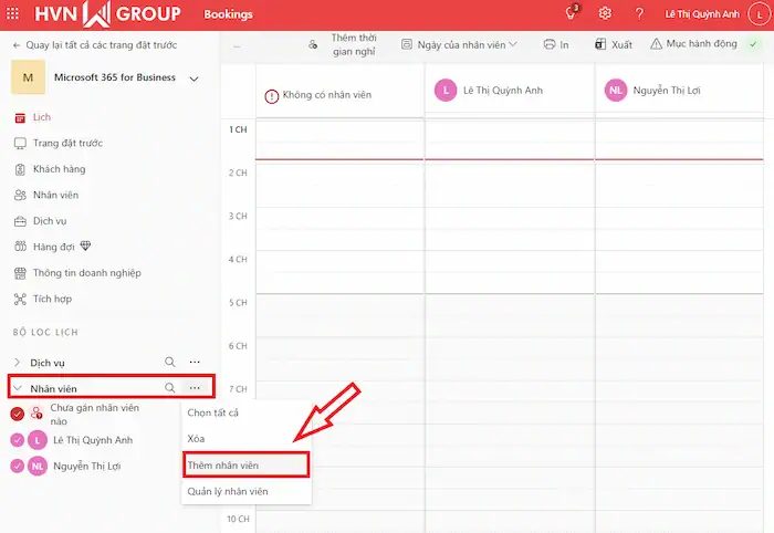 Thêm Nhân Viên Trên Trang Microsoft Bookings