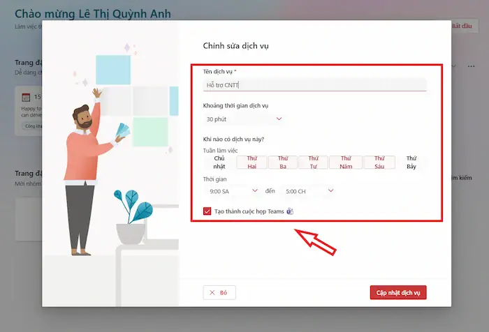 Thiết Lập Dịch Vụ Trên Trang Microsoft Bookings