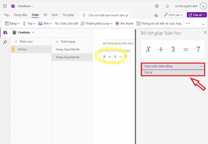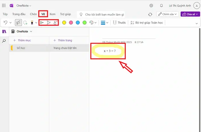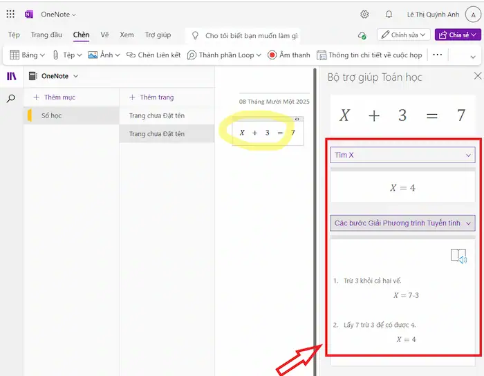 *Lưu ý: Tính năng Trợ lý Toán học (Math Assistant) chỉ hoạt động nếu bạn dùng phiên bản OneNote hỗ trợ Microsoft 365.
