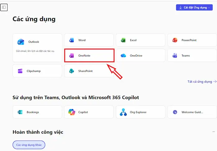 - Trên trình duyệt: Truy cập Office.com, đăng nhập tài khoản Microsoft, rồi chọn OneNote từ danh sách ứng dụng.