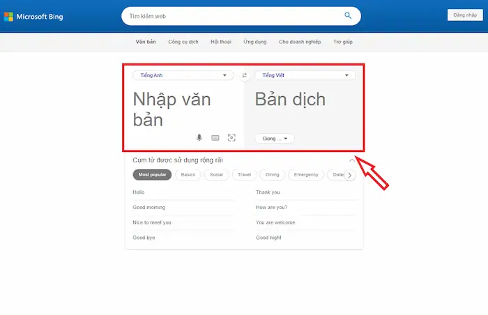 – Bước 1: Mở trình duyệt và truy cập Bing Translator (hoặc tìm kiếm Microsoft Translator).