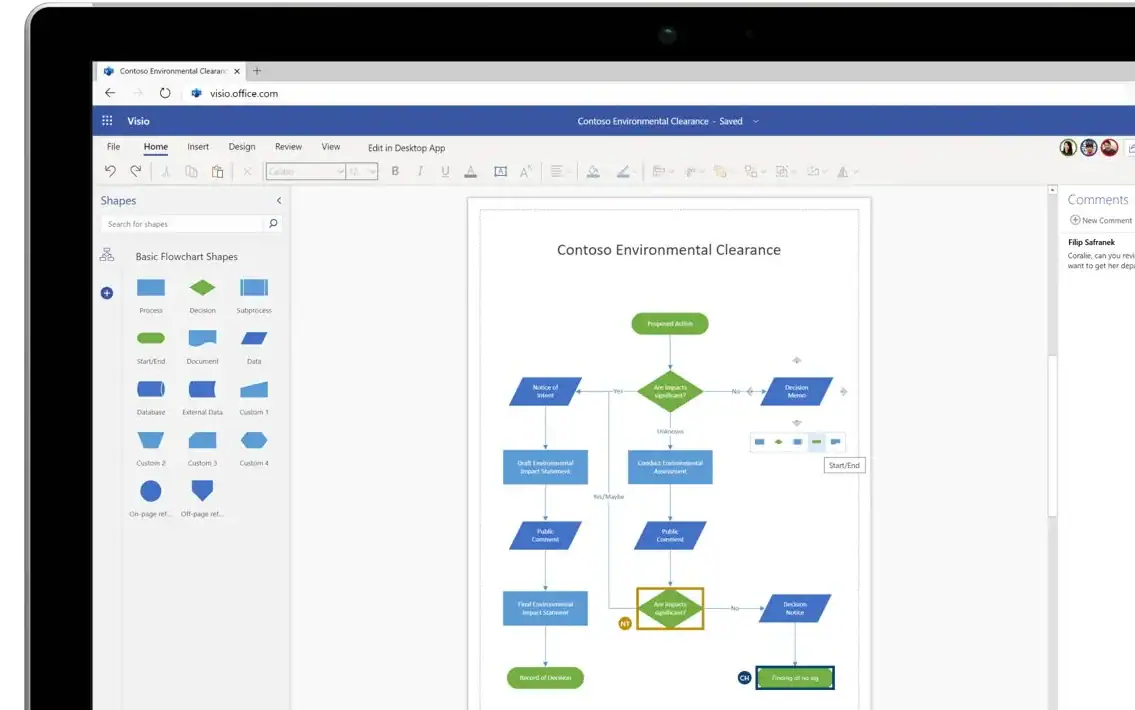 - Cộng tác theo thời gian thực: Người dùng có thể chỉnh sửa, bình luận,... cùng nhau trên Microsoft Visio Plan 1 - Yearly ngay tại thời gian thực để cộng tác nhanh chóng hơn.