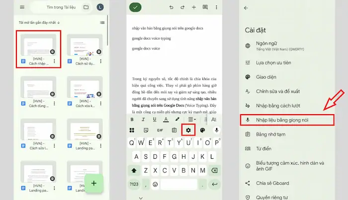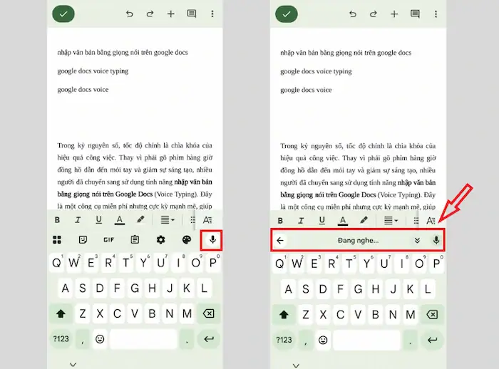 Trên thiết bị di động, tính năng này tích hợp trực tiếp vào bàn phím ảo thay vì nằm trong menu của ứng dụng Google Docs. Do đó, thao tác sẽ có đôi chút khác biệt: