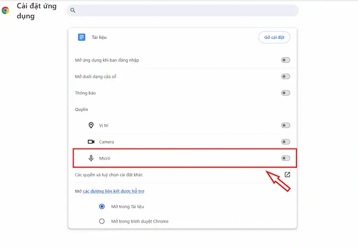 – Bước 2: Chuyển trạng thái Microphone sang Cho phép (Allow).