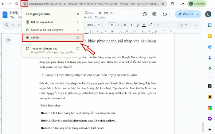 Lỗi Google Docs không nhận Micro hoặc biểu tượng Micro bị xám