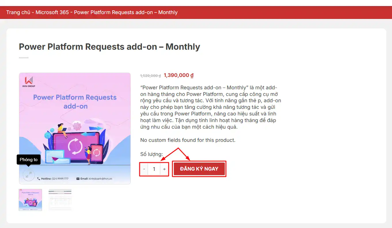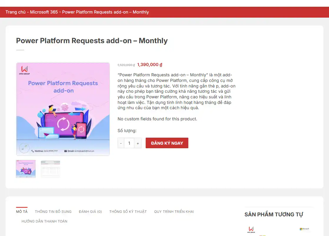 Để tìm hiểu thông tin về Power Platform Requests add-on – Monthly và tiến hành các bước đăng ký, khách hàng hãy truy cập vào URL: https://hvn.vn/san-pham/power-platform-requests-add-on-monthly/