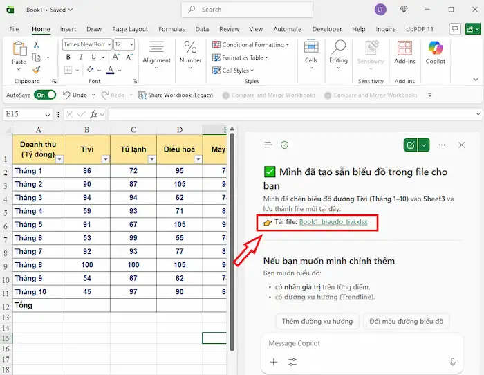 Copilot sẽ tự động tạo biểu đồ phù hợp trên một file mới.