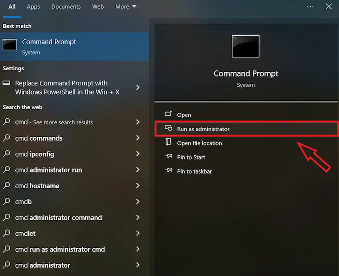 • Trong danh sách kết quả, nhấp chuột phải vào mục Command Prompt.