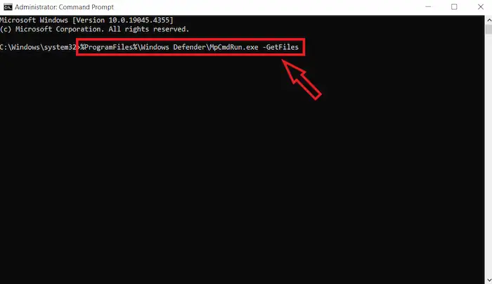 • -GetFiles là tham số dùng để yêu cầu Microsoft Defender tạo ra các tệp nhật ký liên quan đến trạng thái bảo vệ hiện tại.