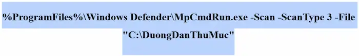 • C:\DuongDanThuMuc là đường dẫn đến thư mục bạn muốn quét. Hãy thay bằng đường dẫn thực tế, ví dụ: “D:\Downloads” hoặc “C:\Users\Username\Documents”.