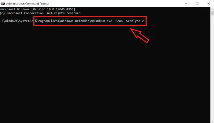 *Lưu ý: -ScanType 2 là tham số chỉ định cho chế độ Full Scan (Quét toàn bộ hệ thống).