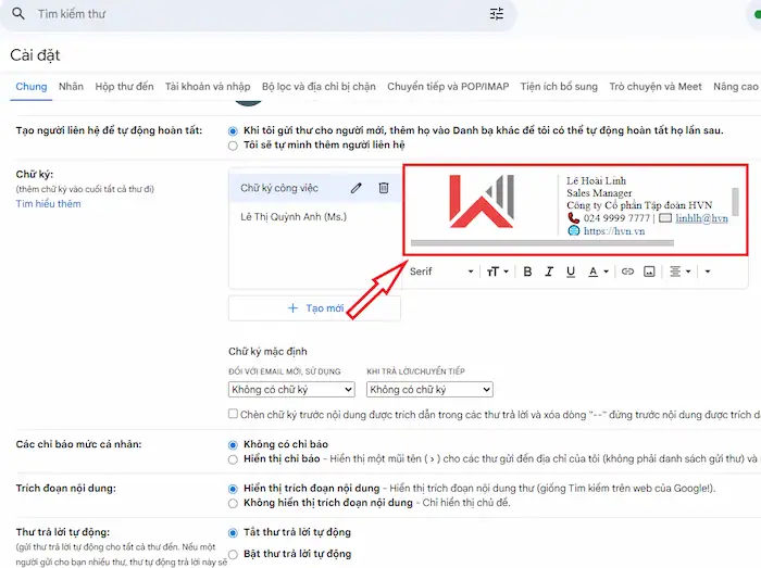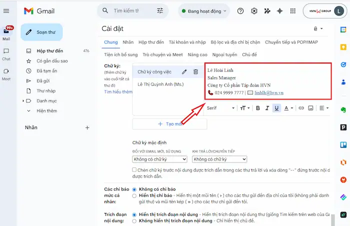 Cách 1: Tạo chữ ký chuyên nghiệp trực tiếp trên Gmail