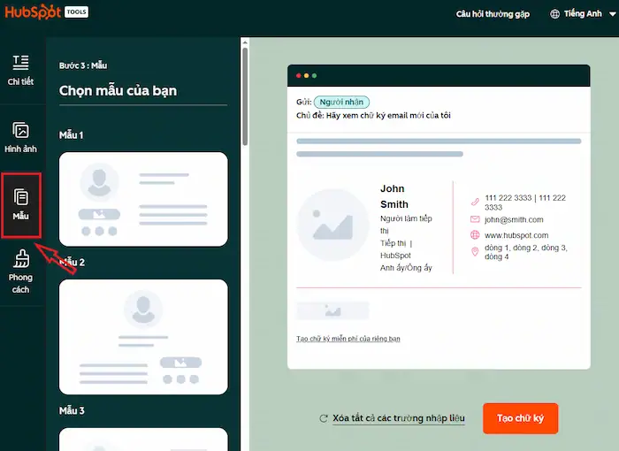 – Bước 3: Tại mục 2. Chọn mẫu chữ ký, bạn tùy chọn một template ưng ý từ danh sách hiển thị.
