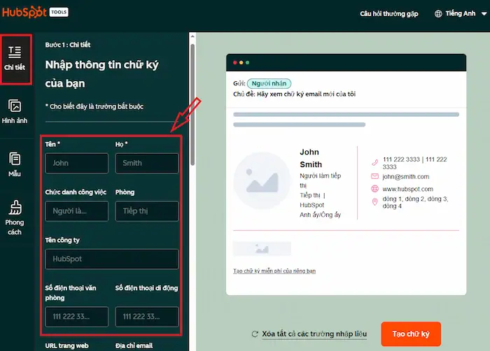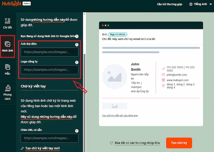 HubSpot là một trong những công cụ tạo chữ ký phổ biến nhờ giao diện đơn giản và hoàn toàn miễn phí. Điều này cho phép người dùng không rành về thiết kế vẫn có thể tạo ra những mẫu chữ ký chuẩn chỉnh chỉ trong vài phút: