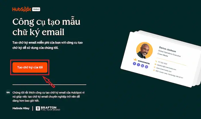 – Bước 1: Truy cập vào trang web HubSpot Email Signature Generator >> nhấn Tạo chữ ký của tôi.