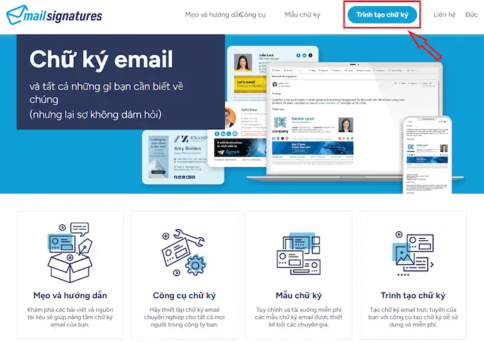 – Bước 1: Tại trang chủ, bạn hãy nhấn chọn Trình tạo chữ ký.