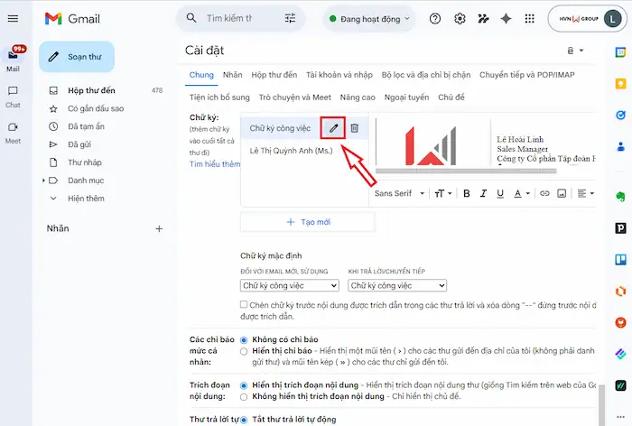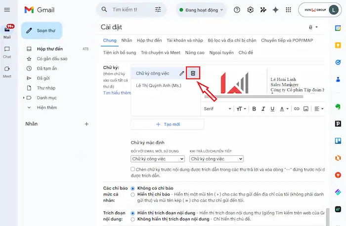 Việc quản lý chữ ký không chỉ dừng lại ở bước tạo mới, mà trong quá trình sử dụng, bạn cũng cần phải biết cách cập nhật thông tin hoặc dọn dẹp các mẫu cũ để hộp thư luôn chuyên nghiệp: