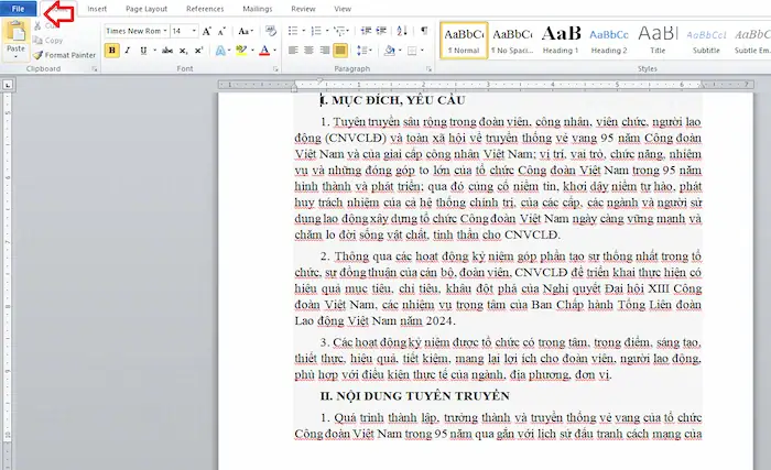 – Bước 1: Mở Microsoft Word, trên thanh công cụ (Ribbon), chọn thẻ File ở góc trên cùng bên trái.