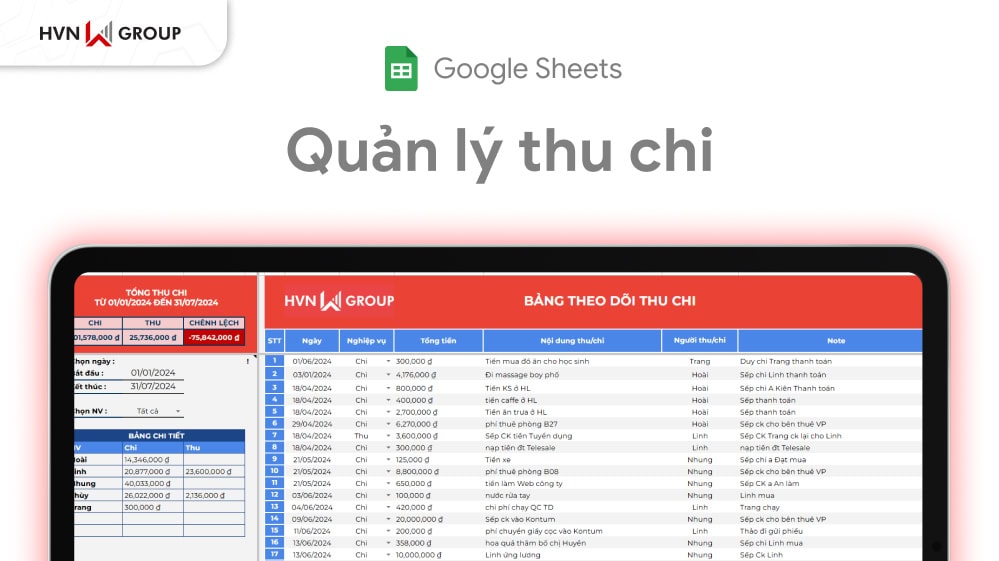 Template Quản lý thu chi là công cụ được tạo ra để hỗ trợ các doanh nghiệp theo dõi, kiểm soát và phân tích các khoản thu chi trong một khoảng thời gian nhất định. Đăng ký nhận ngay Template bản quyền của HVN ngay.